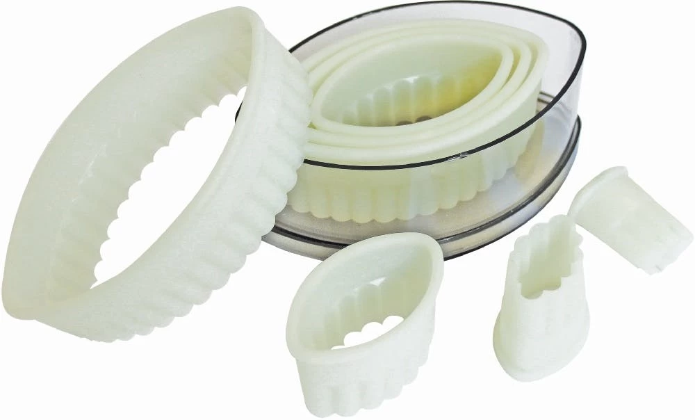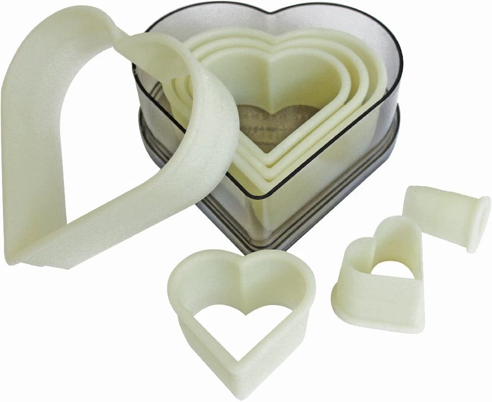 Hochwertiger Ausstechersatz aus Nylon in praktischer Aufbewahrungsdose. Die Ausstecher sind hitzebeständig bis +160°C. ++ Ausführung ++ Herz, gezackt ++ Anzahl Stück ++ 7 ++ Abmessungen / ++ Durchmesser (mm) ++ 120 x 115/ 105 x 100 / 90 x 85 / 75 x 70 / ++ 65 x 55 / 45 x 40 / 30 x 25 ++ Höhe (mm) ++ 35 ++ 120x115mm, 105x100mm, 90x85mm, 75x70mm, 65x55mm, 45x40mm und 30x25mm