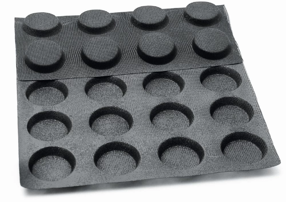 Material: Antihaftbeschichtetes Spezialgewebe. ++ Ideal für die Herstellung von süßen und herzhaften Produkten ++ Flexibles Material ++ Vielfältige Funktionen ++ Schnelle und einfache Anwendung ++ Hohe Produktionsausbeute ++ Homogenes Backen, kein Ankleben des Teiges ++ Formstabil ++ Vermeidet die Blasenbildung ++ Optimale Luftzirkulation garantiert gleichmäßige Bräunung und ein knuspriges Ergebnis ++ Bestens geeignet für Brötchen, Hamburger, Sandwiche und sämtliche Feingebäcke wie Tartletts, Brioche und vieles mehr ++ Temperaturbereich: – 40 bis + 260 °C ( für Backöfen, Mikrowelle oder Gefrierschränke) ++ Formen: 27 ++ Abmessungen: 150x25mm ++ Höhe: 5 mm