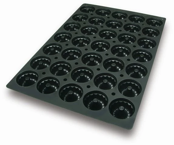 Diese Silikonbackform ist geeignet von -60 bis +230°C und kann in Backöfen, Mikrowellen und Gefrierschränken verwendet werden. ++ Ausführung: Gugelhupf ++ Maße: 400 x 600 mm ++ Nutzen: 35 (72 mm) ++ Höhe: 35 mm ++ Volumen: 90 ml/Nutzen