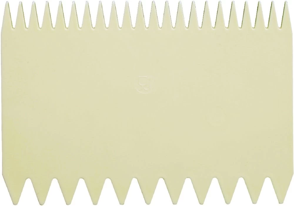 Eisspachtel aus Edelstahl mit farbigem Griff aus Kunststoff.