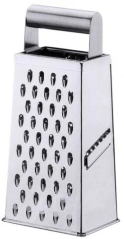 2x Mehrzweckreibe aus Edelstahl 18/0, hochglänzend, mit extra geschärftem, eingelassenem Hobelmesser, handlicher Rohrgriff aus Edelstahl 18/10, verstärkte Vernietung, extra schwere und robuste Profi-Qualität Länge: 11 cm, Breite: 8,5 cm, Höhe: 24 cm