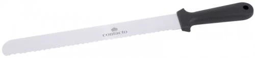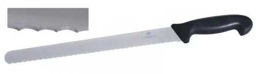2x Konditormesser mit einseitigem Wellenschliff. aus Chrom-Molybdän-Vanadium (DIN x50CrMoV15). Griff aus schwarzem ABS-Kunststoff. spülmaschinenfest Klingenlänge: 30.5 cm. Klingenbreite: 3.6 cm. Klingenlänge: 12 Zoll