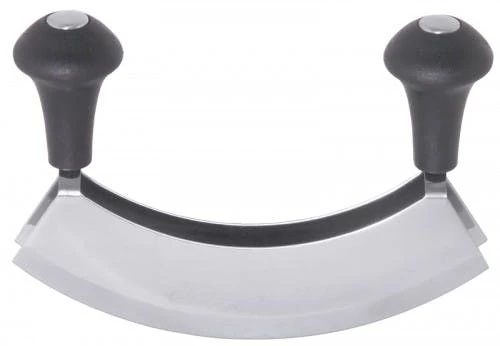 2x Wiegemesser zweischneidig. aus Edelstahl 18/0. mit Griffen aus Polyethylen Länge: 17.5 cm. Klingenbreite: 3.7 cm. Gesamthöhe: 12 cm