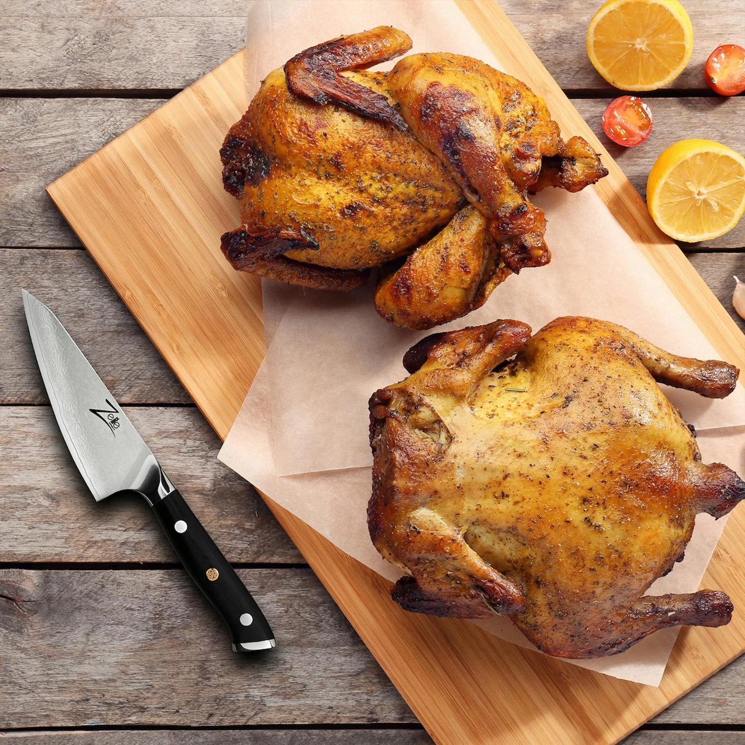 Das wendige 4,5` Honseuki Messer ist ein einsatzfreudiges Allzweckmesser japanischen Ursprungs. Durch die steife Klinge mit sehr dünner Spitze ist es perfekt geeignet, um Fleischsorten verschiedenster Art sauber zu trennen. Daneben kannst du mit diesem wertvollen Kücheninstrument der Alpha-Royal Japanese Serie von Zelite Infinity by Klarstein Geflügel mit Leichtigkeit entbeinen, Fisch und rotes Fleisch professionell filetieren sowie Fett und Bindegewebe schneiden. Aber auch Gemüse: Großzügig breit ist die Klinge am Kropf und der Bauchbereich leicht gewölbt, wodurch du schnell mit wippenden Bewegungen schneiden kannst.