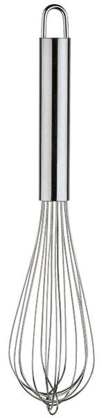 Dieser Schneebesen aus hochwertigem Edelstahl sorgt für fein aufgeschlagene Speisen. Er kann zum Schlagen von Eiern, Rühren von Teig und Saucen oder zum Aufrühren von Suppen verwendet werden. Durch das Design am Ende des Schneebesens, kann er zur einfachen Aufbewahrung an jedem Haken in der Küche aufgehängt werden. Die Reinigung kann ganz leicht in der Spülmaschine erfolgen. Durch das hochwertig verabeitete Material ist langlebigkeit bei diesem Rührbesen garantiert.