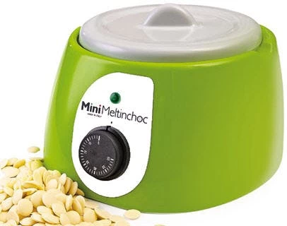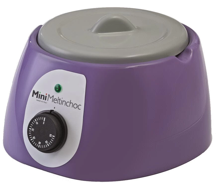 Kleiner, moderner Aufschmelzbehälter. Ideal für kleinere Produktionen, zu Showzwecken oder auch für Schulungen. Ebenfalls können darin auch Massen für Eistoppings aufgeschmolzen werden. Der Behälter wird mit Warmluft beheizt und die Temperatur kann mit Hilfe eines Drehrads eingestellt werden. Temperaturbereich einstellbar von 0 bis +60°C. Abmessung Gerät: 26 x 26 x 16 cm Abmessung Behälter: 18,5 x 10,7 cm, 1,8 l