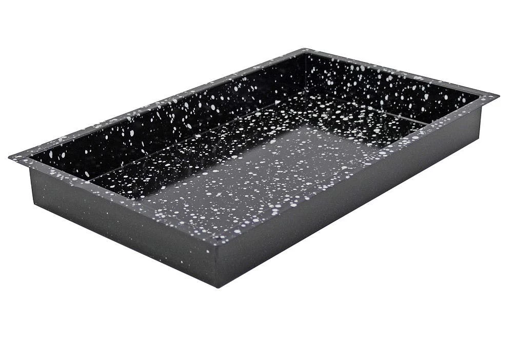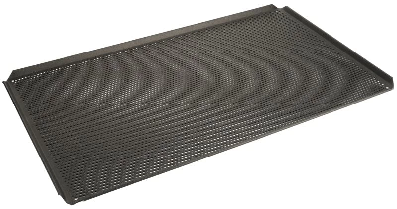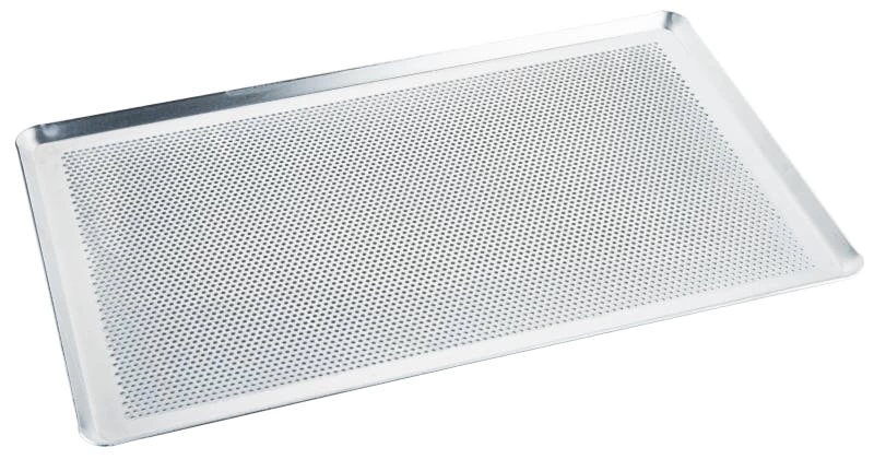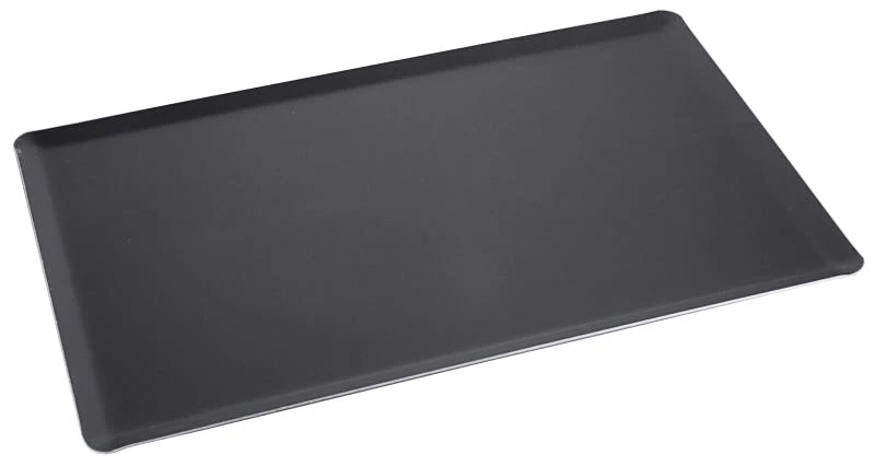 Backblech, aus 1,5 mm starkem Aluminiumblech, ungebeizt, aus einem Stück gezogen, Ränder 90° mit geschlossenen Ecken, nicht spülmaschinengeeignet