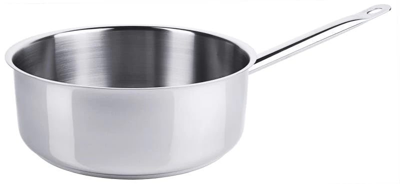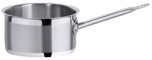 Stielkasserolle, aus Edelstahl 18/10, matt poliert, mit beidseitigem Ausguss, mit Rohrgriff, 7 mm Sandwichboden, induktionsgeeignet, schwere Qualität