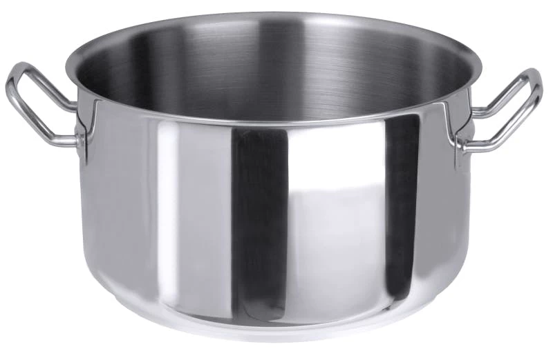 Stielkasserolle, niedrig, Sautoirform, aus Edelstahl 18/10, matt poliert, mit Rohrgriff und Schüttrand, 7 mm Sandwichboden, induktionsgeeignet, schwere Qualität