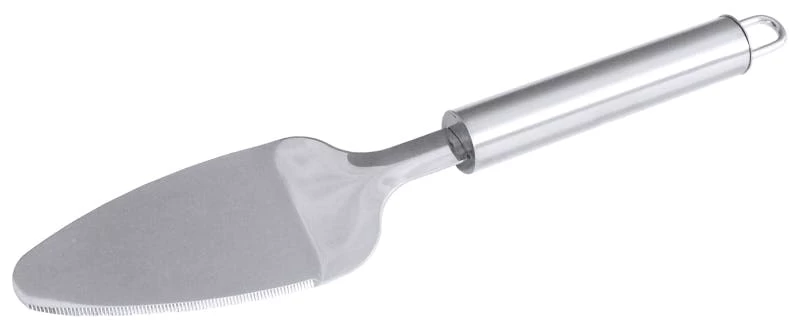 Tortenheber, gezahnt, Serie POLARIS, mit seidenmatt poliertem Griff aus Edelstahl 18/10, mit Aufhängeöse, leicht gekröpfter Heber aus hochglänzendem Edelstahl 18/10, mit einer gezahnten Kante