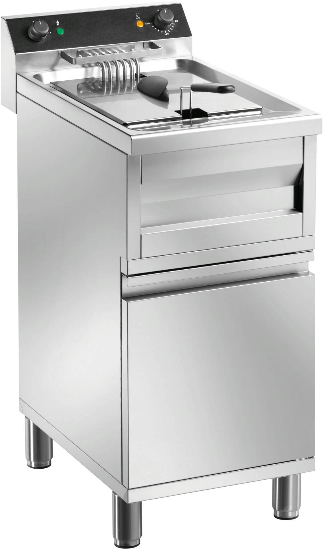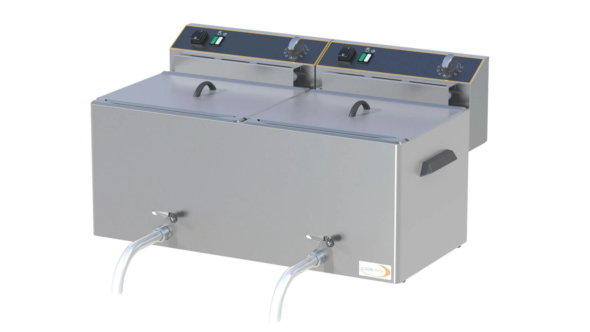 > Gehäuse aus Edelstahl > Temperaturbereich: 50°C bis 180°C > Sicherheitsthermostat > Mikroschalter > kalte Zone > abnehmbare Heizelemente > ausgestattet mit Leistungsschützen > mit Ablasshahn > inklusive 2 Körbe 210 x 280 x 120 mm