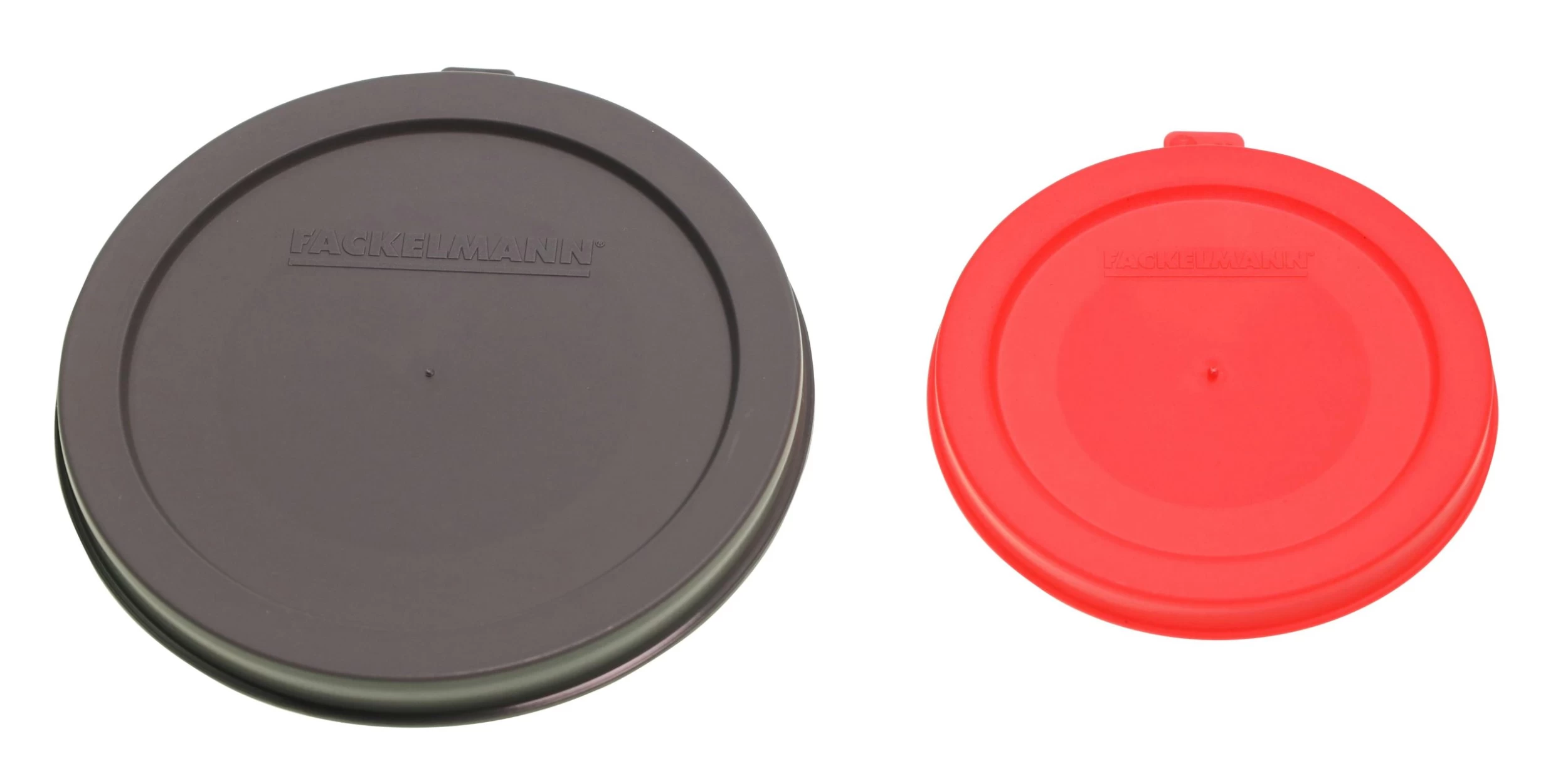 FACKELMANN 49463 Cat&Dog Konserven-/Dosendeckel Material: Kunststoff, Ø75 + Ø100mm Menge: 2 Stück Spülmaschinengeeignet Zum Verschließen von Tierfutterdosen Made in China Farbe: sortiert: rot, grau (nicht wählbar!)