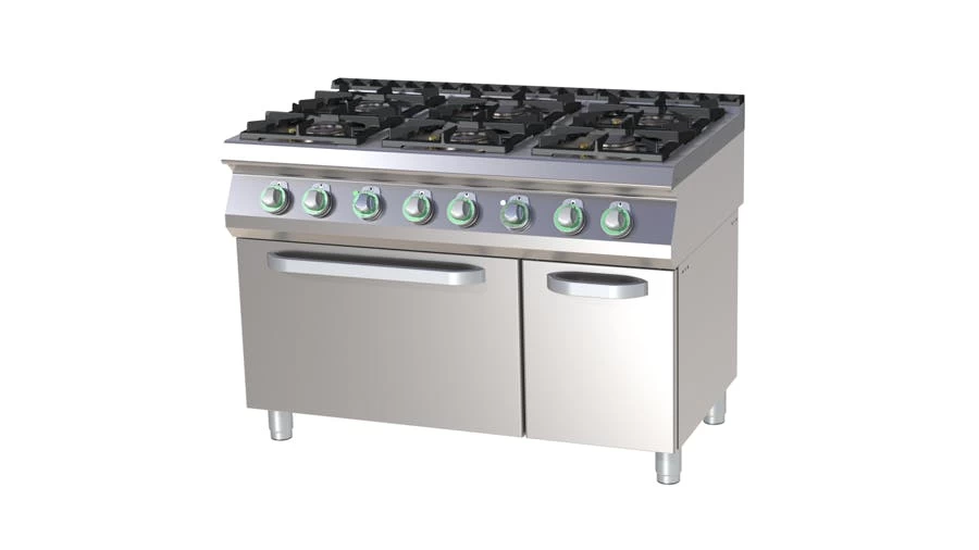 Gasherd, 6-Flammen mit Gasbackofen GN2/1