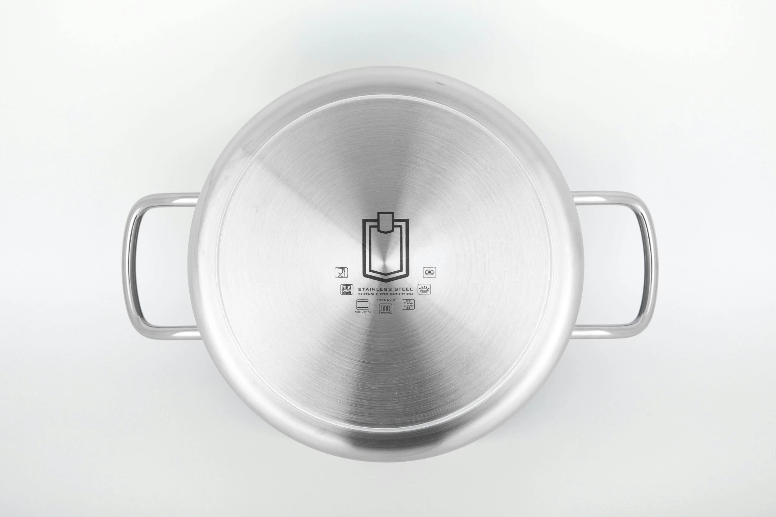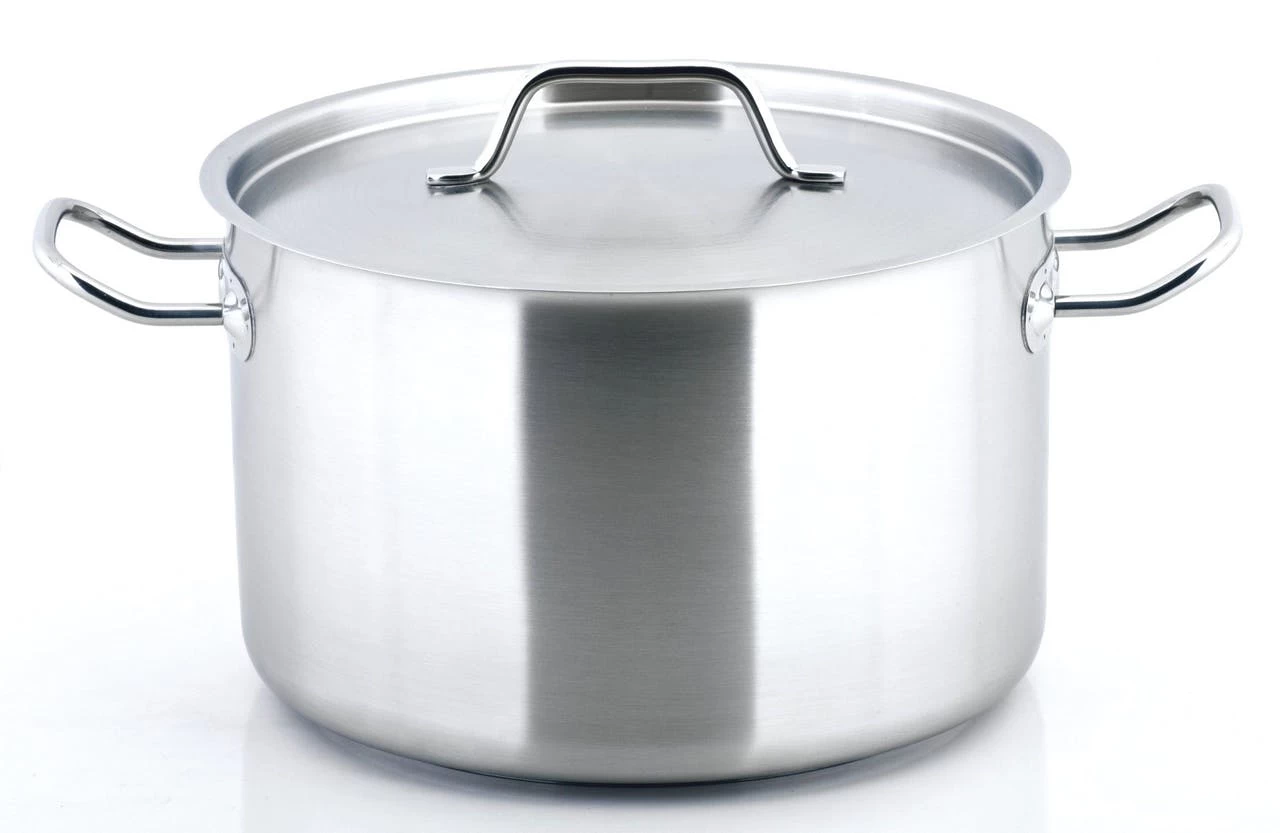 Der METRO Professional Topf hat einen Durchmesser von 40 cm und eine Höhe von 19.7 cm, eine Dicke von 1 mm und einen Boden mit einem Durchmesser von 35 cm mit einer Dicke von 5 mm. Außerdem verfügt das Produkt über Edelstahlgriffe und eine satinierte Außenseite aus Edelstahl. Der Topf ist für Elektro-, Gas-, Glaskeramik- und Induktionsherde geeignet. Im Lieferung sind einen flachen Deckel aus demselben Material und in derselben Ausführung enthalten.