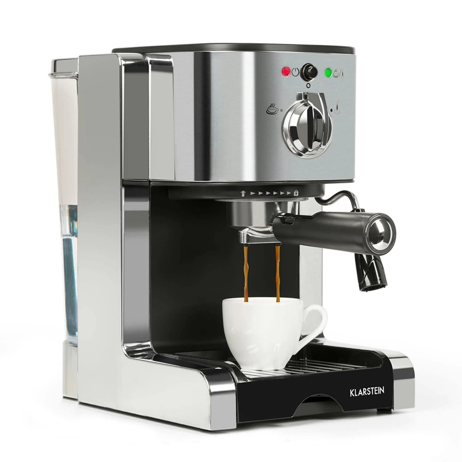 Für passionierte Genießer: Die Klarstein Passionata 20 ist eine elegante Espressomaschine mit ausgeprägtem Sinn für Funktionalität und Design. Mit kraftvollen 1.350 Watt Leistung und 20 bar entfesselt sie das volle Aroma des Kaffees. Mit der klassischen Siebträgermaschine aus Edelstahl können sowohl Kaffee- oder Espressopulver als auch Kaffee- und Espressopads verwendet werden. Im Handumdrehen kannst du mit der Dampfdüse cremigen Schaum für dein Heißgetränk zaubern. Du kannst zwei Tassen gleichzeitig brühen und diese auf der oberen Wärmeplatte warmhalten.