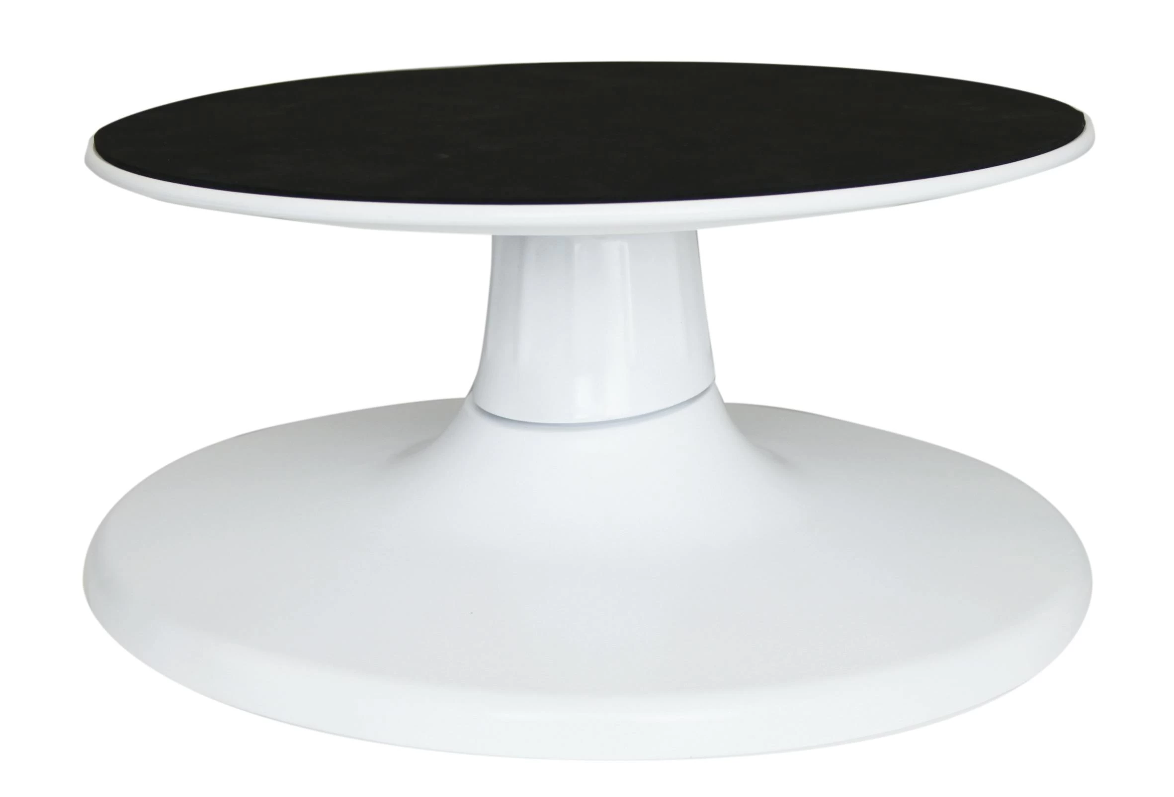Dreh- und schwenkbare Torten- und Dekorierplatte aus Melamin.