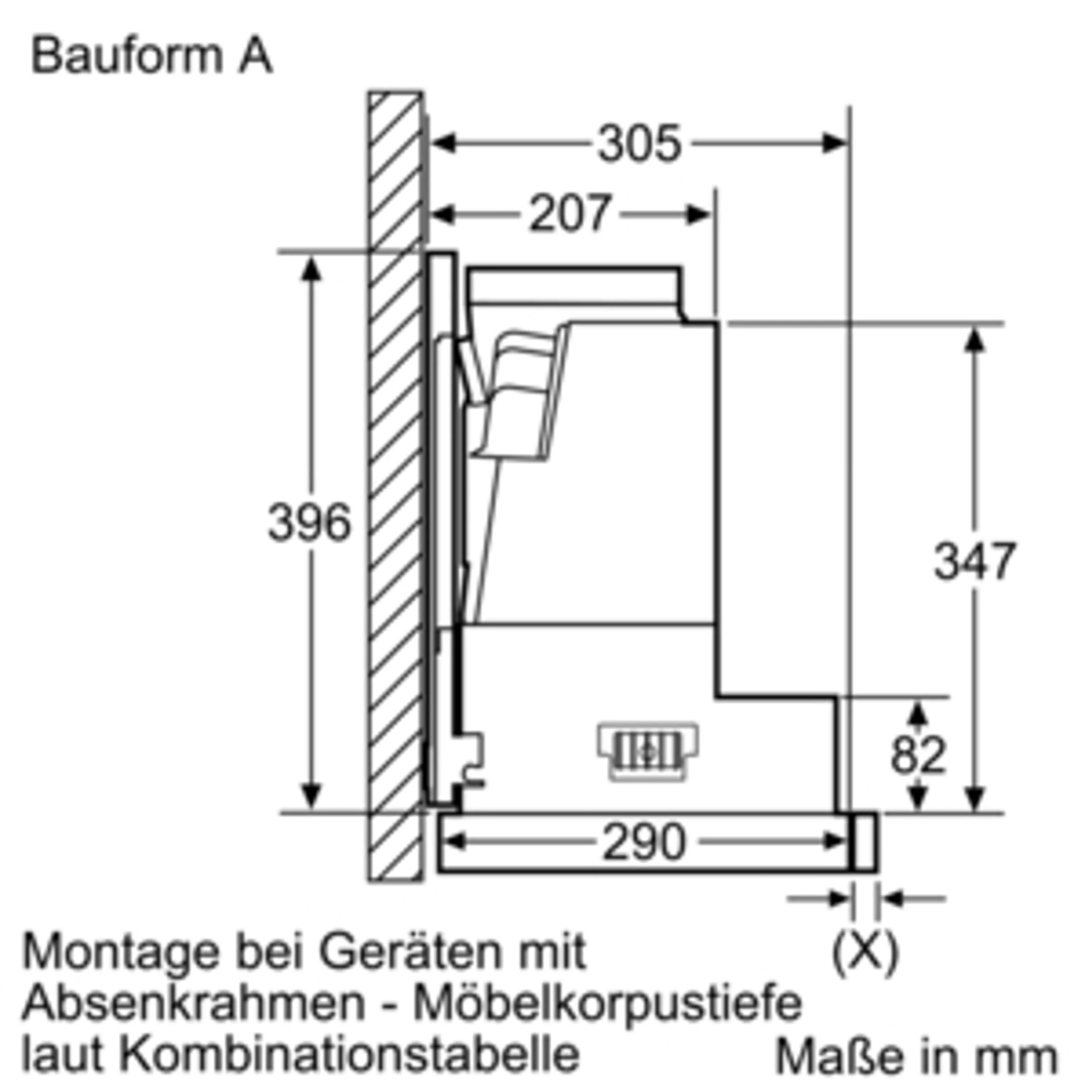Der Absenkrahmen läßt die Flachschirmhaube komplett im Oberschrank verschwinden