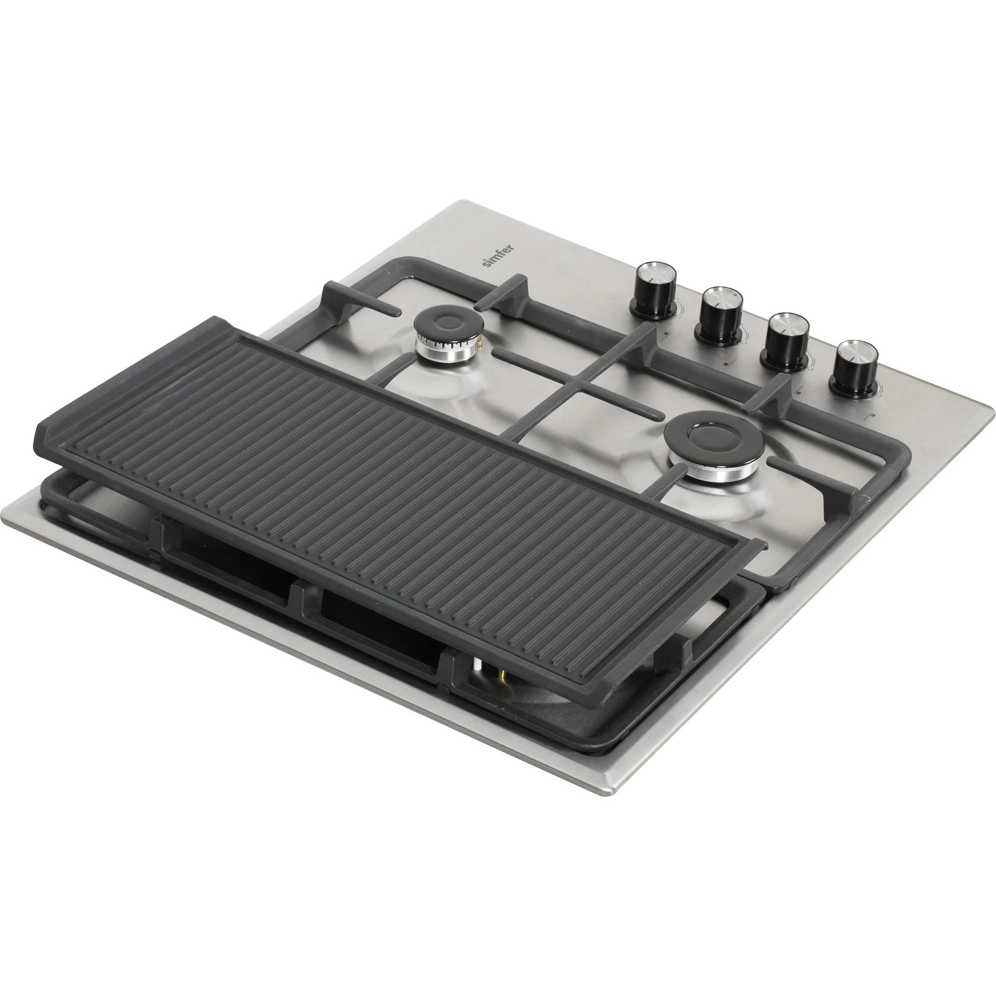 Simfer Gusseisen-Grillplatte | 47 x 23 cm | für 60 cm Gaskochfelder | gerippt | Topfträger-Klammern | Grillzubehör