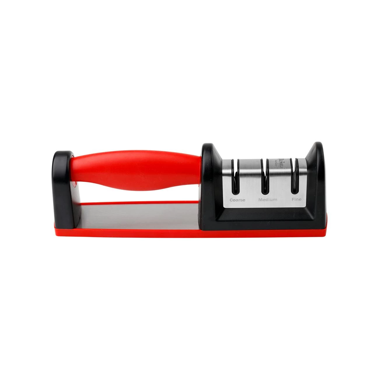 Eine gute Alternative zum traditionellen Schleifstab. Dieser manuelle Messerschleifer hat sowohl Diamant- als auch Keramikschleifblätter für ein optimales Resultat.