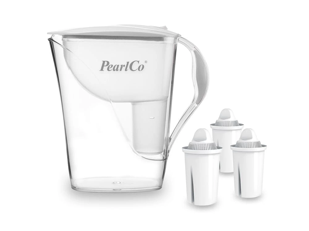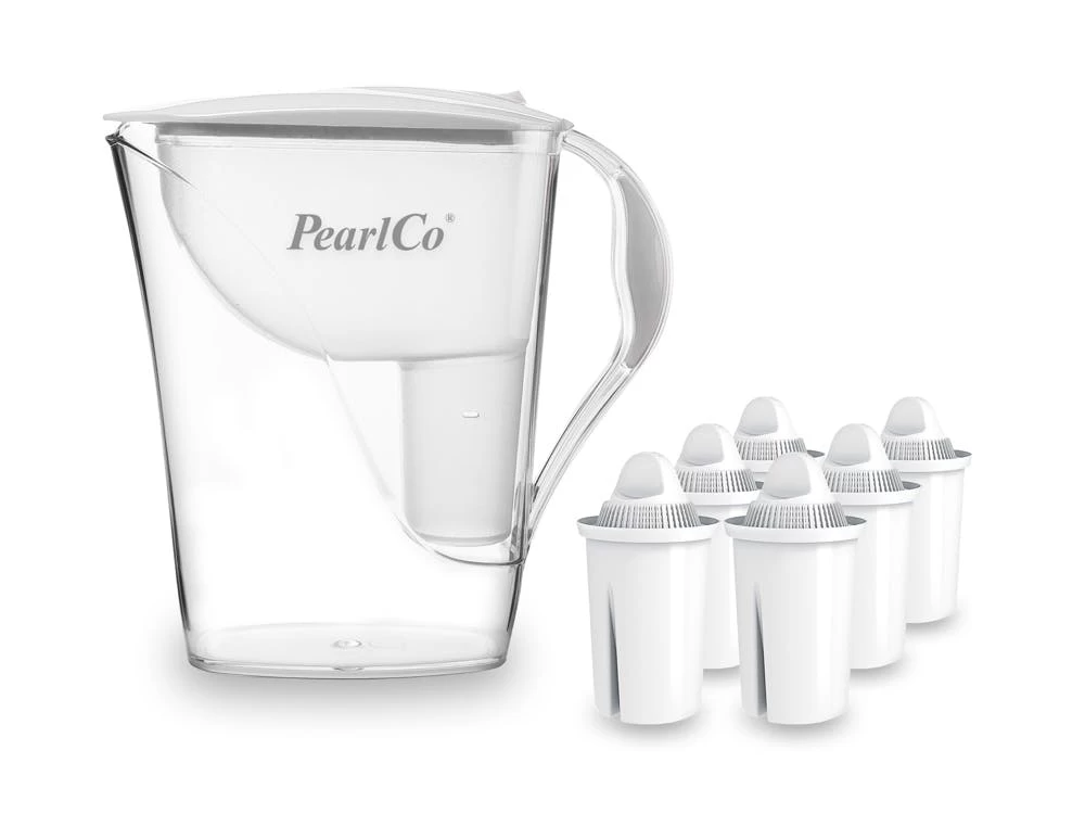 Ökologisch Vermeidung von Plastikmüll Sparsam Verzichten Sie auf Plastikflaschen Reiner Geschmack Speisen und Getränke entfalten ihr volles Aroma Der PearlCo Wasserfilter Fashion Der PearlCo Wasserfilter Fashion ist aus hochwertigem, stabilen Kunststoff gefertigt. Ein manuell einstellbarer Wechselanzeiger mit Datums- und Monatsangaben zeigt auf einen Blick, wann eine neue Filterkartusche benötigt wird. Besonders praktisch: Beim Einschieben des Wechselanzeigers wird auch die Einfüllöffnung automatisch verschlossen. Trotz seiner hohen Kapazität von 3,3 Litern gefiltertem Wasser passt der Wasserfilter Fashion in viele Kühlschranktüren. Sein ergonomisch geformter Griff sorgt für eine komfortable, einfache Handhabung. Die rutschfeste Bodenplatte garantiert einen sicheren und stabilen Stand. Universal Filterkartusche Classic PearlCo Universal Wasserfilter-Kartuschen optimieren ihr Leitungswasser mit hygienischer Filtertechnik. Der Kalkgehalt des Wassers wird deutlich reduziert, ebenso der Anteil an Schadstoffen wie Blei und anderen Schwermetallen. Gleiches gilt für geschmacklich störendes Chlor und viele weitere, im Trinkwasser unerwünschte Stoffe. Die Filterung erzeugt aromatisches, geschmackvolles Wasser, das für die Zubereitung von Speisen und Getränken oft viel besser geeignet ist als ungefiltertes Leitungswasser. Besonders groß ist der Unterschied bei Tee und Kaffee: Beide Getränke werden nicht nur sichtbar klarer, sondern schmecken auch deutlich besser!